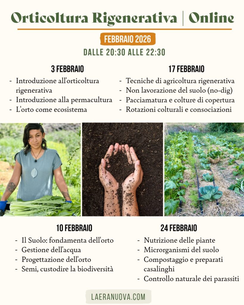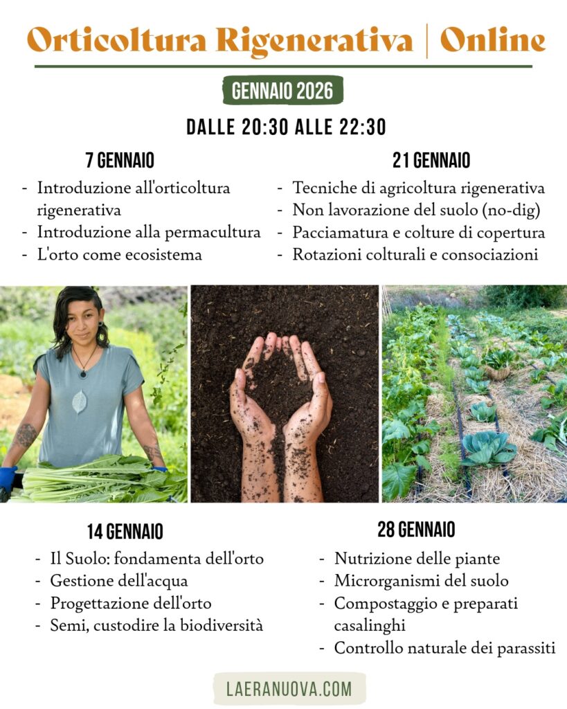 Benvenuto nel nostro corso online di orticoltura rigenerativa! Un viaggio alla scoperta di un modo di coltivare che non solo ti fornirà cibo sano e nutriente, ma ti aiuterà anche a riconnetterti con la terra ed a conquistare la tua autosufficienza.